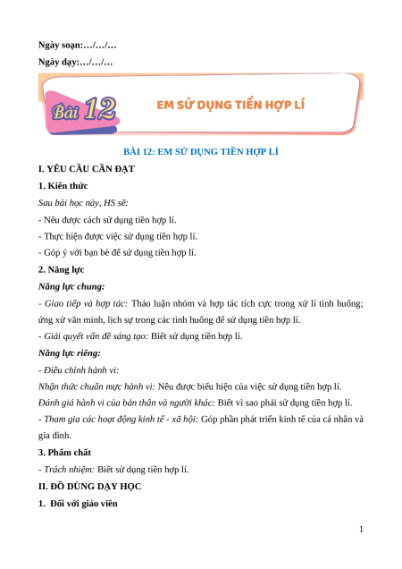 BÀI 12: EM SỬ DỤNG TIỀN HỢP LÍ
