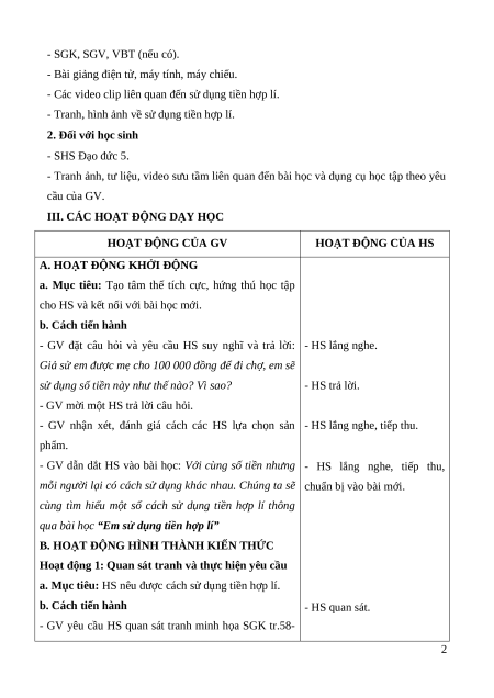 Giáo án Bài 12: Em sử dụng tiền hợp lí Đạo đức lớp 5 Cánh diều