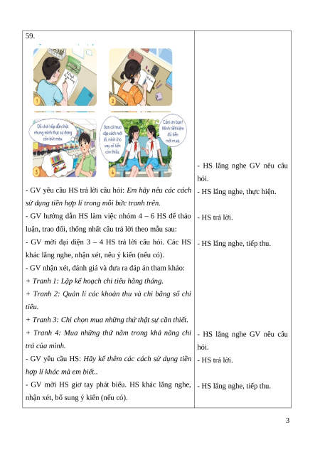 a. Mục tiêu: HS nêu được cách sử dụng tiền hợp lí. b. Cách tiến hành - HS quan sát.