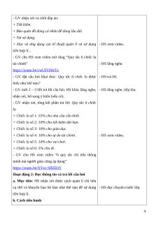 - GV cho HS xem video mở rộng “Quy tắc 6 chiếc lọ tài chính” - HS lắng nghe. https://youtu.be/cwUFI1bleTo