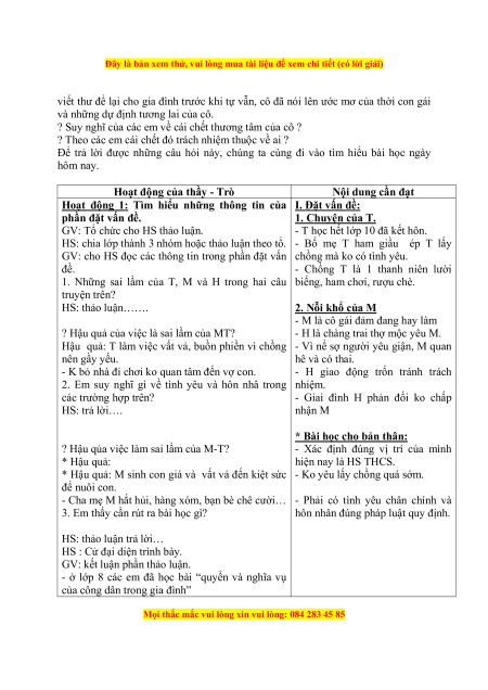 - Tuyên truyền mọi người thực hiện luật hôn nhân và gia đình. 3. Thái độ: