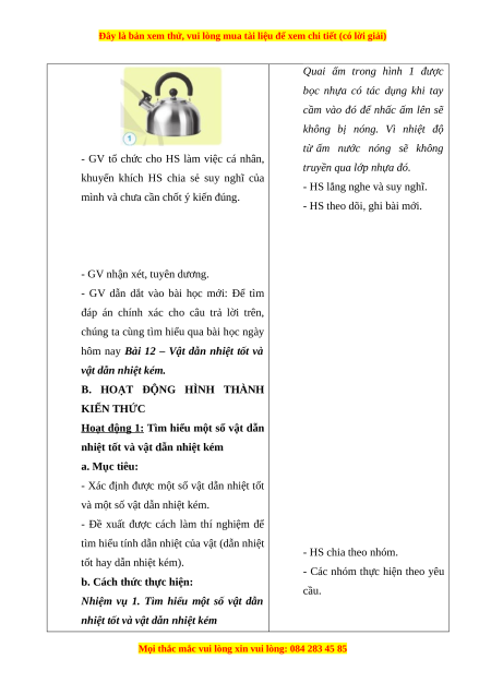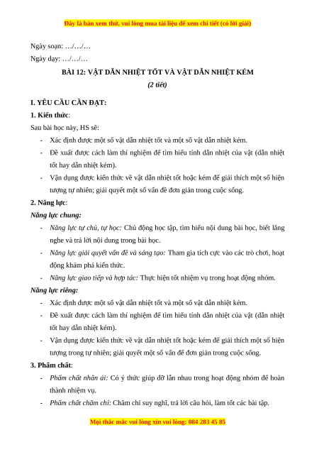 BÀI 12: VẬT DẪN NHIỆT TỐT VÀ VẬT DẪN NHIỆT KÉM (2 tiết)