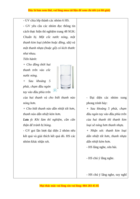 - Đề xuất được cách làm thí nghiệm để tìm hiểu tính dẫn nhiệt của vật (dẫn nhiệt