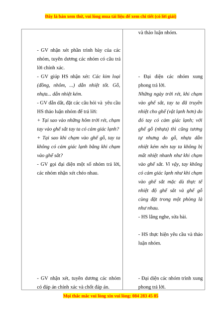 - Đề xuất được cách làm thí nghiệm để tìm hiểu tính dẫn nhiệt của vật (dẫn nhiệt tốt hay dẫn nhiệt kém).
