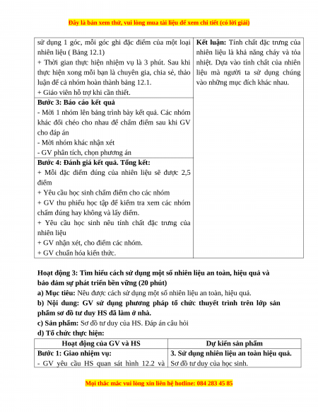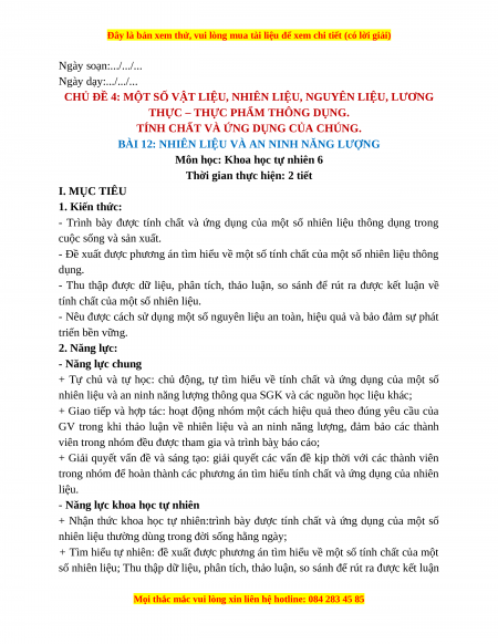 - Nêu được cách sử dụng một số nguyên liệu an toàn, hiệu quả và bảo đảm sự phát triển bền vững. 2. Năng lực: - Năng lực chung