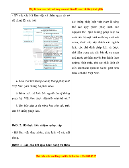 Bước 1: GV chuyển giao nhiệm vụ học tập 1. Hệ thống pháp luật Việt Nam