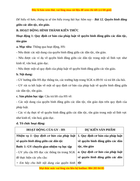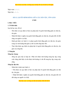 BÀI 12. QUYỀN BÌNH ĐẲNG GIỮA CÁC DÂN TỘC, TÔN GIÁO (3 tiết) I. MỤC TIÊU 1. Về kiến thức Sau bài học này, HS sẽ:
