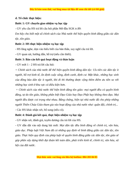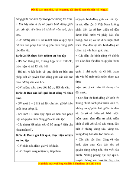 - Nêu được các nội dung của quyền bình đẳng giữa các dân tộc, tôn giáo.