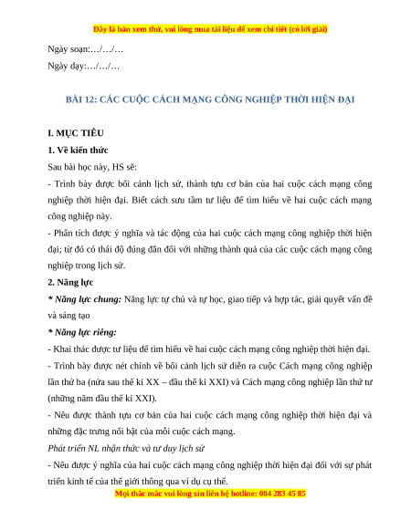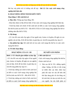 BÀI 12: CÁC CUỘC CÁCH MẠNG CÔNG NGHIỆP THỜI HIỆN ĐẠI I. MỤC TIÊU 1. Về kiến thức Sau bài học này, HS sẽ:
