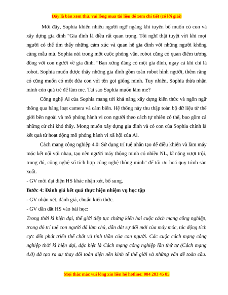 - GV cho HS xem một đoạn phim hoặc tư liệu về robot Sophia. Sau đó nêu vấn đề:
