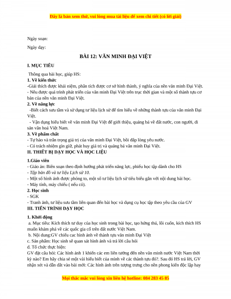BÀI 12: VĂN MINH ĐẠI VIỆT I. MỤC TIÊU