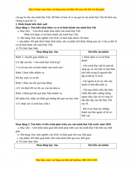 a. Mục tiêu: - Giới thiệu khái quát tiến trình phát triển cuả văn minh Đại Việt trên trục thời