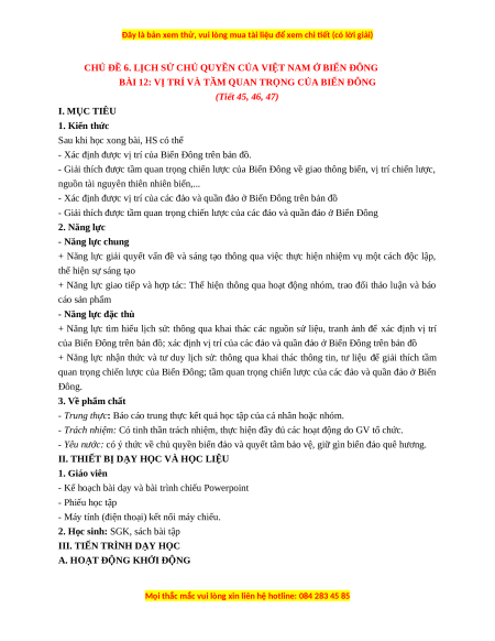 CHỦ ĐỀ 6. LỊCH SỬ CHỦ QUYỀN CỦA VIỆT NAM Ở BIỂN ĐÔNG