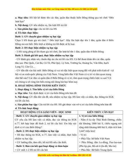 a. Mục tiêu: Giải thích được tầm quan trọng chiến lược của Biển Đông về giao thông biển, vị trí