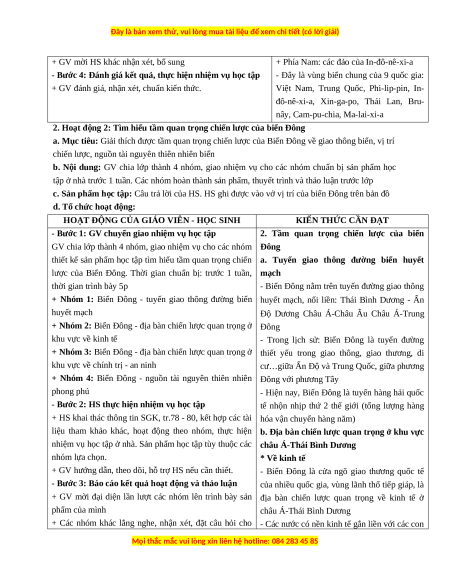liệu tham khảo khác, hoạt động theo nhóm, thực hiện b. Địa bàn chiến lược quan trọng ở khu vực