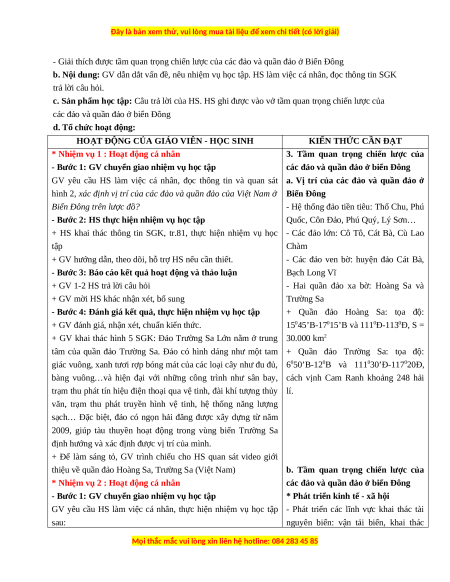 - Giải thích được tầm quan trọng chiến lược của các đảo và quần đảo ở Biển Đông 2. Năng lực - Năng lực chung
