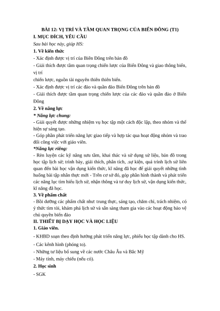 - Giải thích được tầm quan trọng chiến lược của các đảo và quần đảo ở Biển Đông 2. Về năng lực * Năng lực chung: