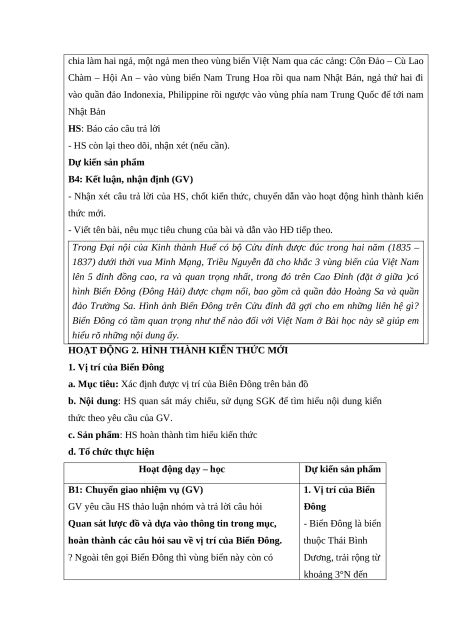 BÀI 12: VỊ TRÍ VÀ TẦM QUAN TRỌNG CỦA BIỂN ĐÔNG (T1) I. MỤC ĐÍCH, YÊU CẦU