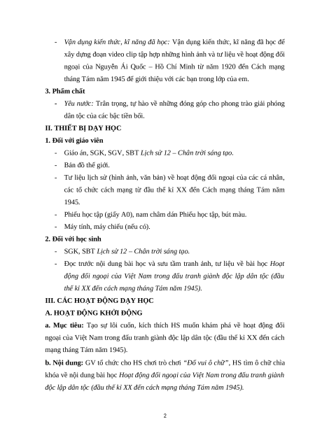 Giáo án Bài 12 Lịch sử 12 Chân trời sáng tạo (2024): Hoạt động đối ngoại của Việt Nam trong đấu tranh giành độc lập dân tộc