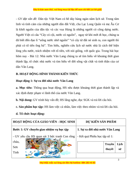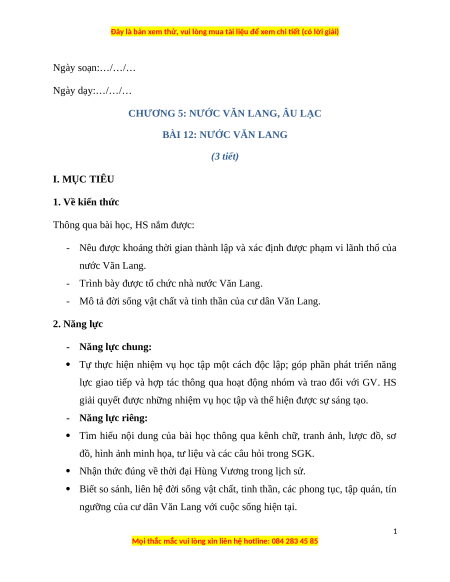 BÀI 12: NƯỚC VĂN LANG (3 tiết) I. MỤC TIÊU 1. Về kiến thức