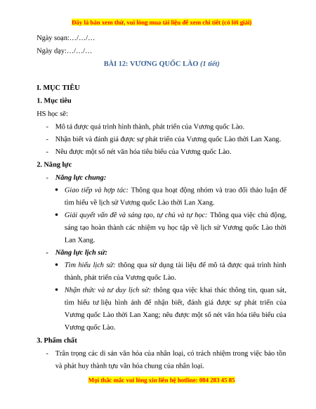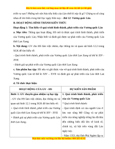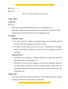 BÀI 12: VƯƠNG QUỐC LÀO (1 tiết) I. MỤC TIÊU 1. Mục tiêu HS học sẽ: