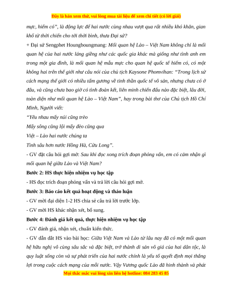 b. Nội dung: GV kết nối lịch sử Lào với lịch sử Việt Nam qua câu chuyện về quan hệ