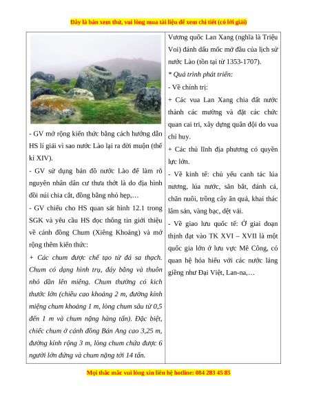 Giáo án Bài 12 Lịch sử 7 Cánh diều (Phiên bản 2): Vương quốc Lào