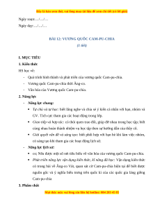 BÀI 12: VƯƠNG QUỐC CAM-PU-CHIA (1 tiết) I. MỤC TIÊU 1. Kiến thức HS học về: