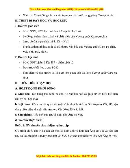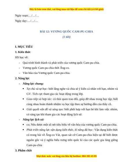 Giáo án Bài 12 Lịch sử 7 Chân trời sáng tạo: Vương quốc Cam-pu-chia(phiên bản 2)