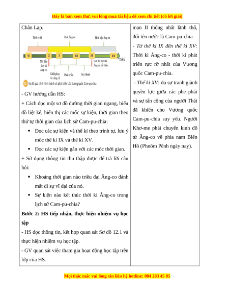 kê, nắm được các mốc sự kiện, thời gian theo thứ tự thời gian của lịch sử Cam-pu-