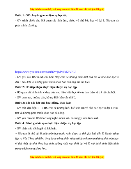 b. Nội dung: GV cho HS quan sát hình ảnh, video về nhà bác học vĩ đại I. Niu-tơn và