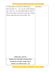 thành tựu tiêu biểu về khoa học, kĩ thuật, văn học, nghệ thuật trong các thế kỉ XVIII –