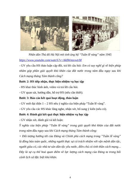 b. Nội dung: GV cho HS quan sát hình ảnh, video về “Tuần lễ vàng” được tổ chức