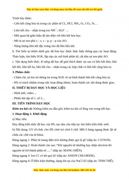 - Trình bày được khái niệm năng lượng liên kết (cộng hóa trị).
