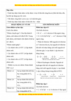 1 cặp e dùng chung trong phân tử HCl. học trong phân tử Cl2, HCl. Nhóm 3,4