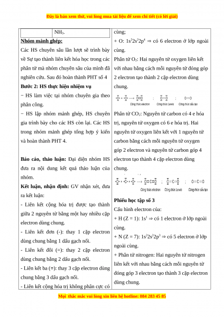- Năng lực giao tiếp và hợp tác: Làm việc nhóm tìm hiểu về sự tạo thành liên kết