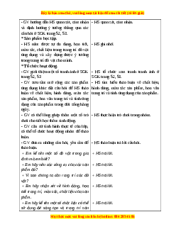 động ở mỗi tiết cho phù hợp nhưng phải đảm bảo HS thực hiện đầy đủ các nhiệm vụ