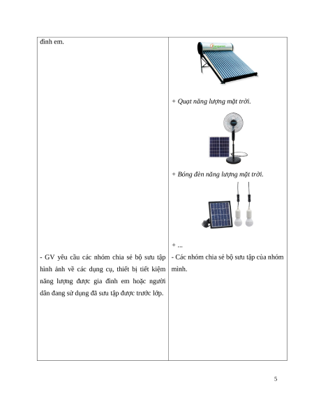 - Trình bày được một số dụng cụ, thiết bị tiết kiệm năng lượng được sử dụng