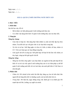 Giáo án Bài 12: Quản lí môi trường nuôi thuỷ sản Công nghệ 12 Cánh diều