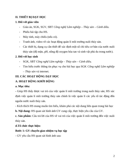- Có ý thức vận dụng kiến thức về quản lí môi trường thủy sản vào thực tiễn. 2. Năng lực