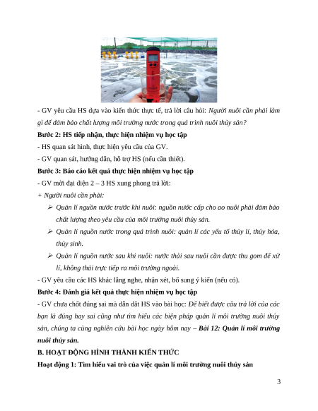 Hoạt động 1: Tìm hiểu vai trò của việc quản lí môi trường nuôi thủy sản 3
