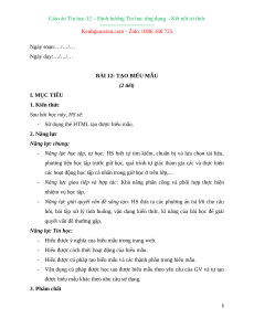 BÀI 12: TẠO BIỂU MẪU (2 tiết) I. MỤC TIÊU 1. Kiến thức