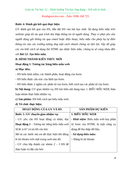 c) Sản phẩm: HS biết cách tạo biểu mẫu web.