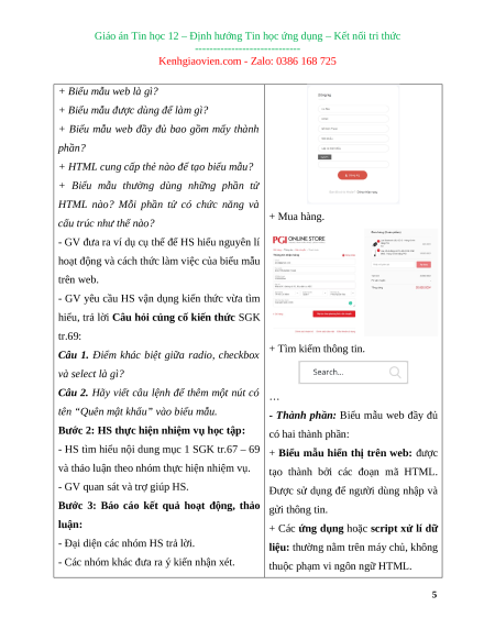 b) Nội dung: GV giao nhiệm vụ; HS tìm hiểu nội dung mục 1. BIỂU MẪU WEB, thảo