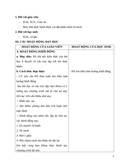 III. CÁC HOẠT ĐỘNG DẠY HỌC