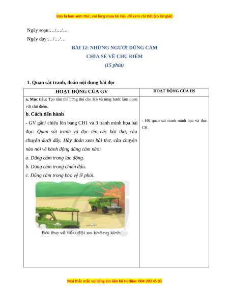 Giáo án Bài 12 Tiếng Việt lớp 4 Cánh diều: Những người dũng cảm