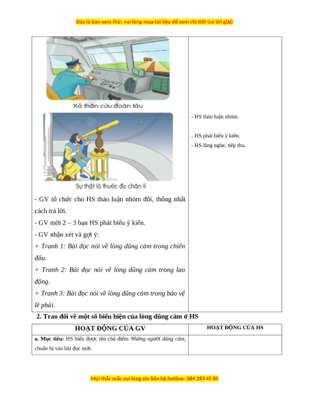 2. Trao đổi về một số biểu hiện của lòng dũng cảm ở HS