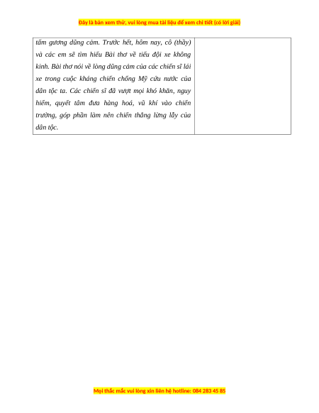 và các em sẽ tìm hiểu Bài thơ về tiểu đội xe không