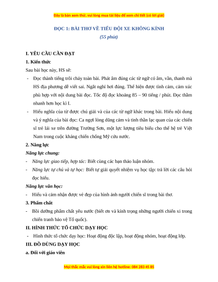 ĐỌC 1: BÀI THƠ VỀ TIỂU ĐỘI XE KHÔNG KÍNH
