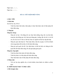 BÀI 12: TIẾT KIỆM ĐIỆN NĂNG I. MỤC TIÊU 1. Kiến thức